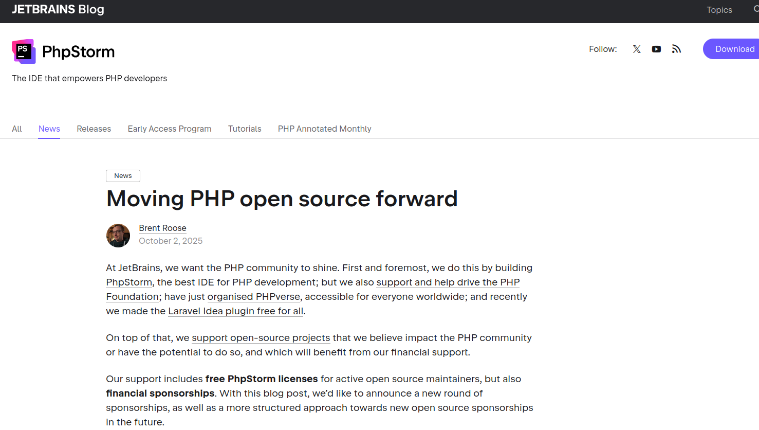 👉 Ne pas oublier : JetBrains est un sponsor majeur de la PHP Foundation ; payer sa licence JetBrains, c’est contribuer directement à #PHP.